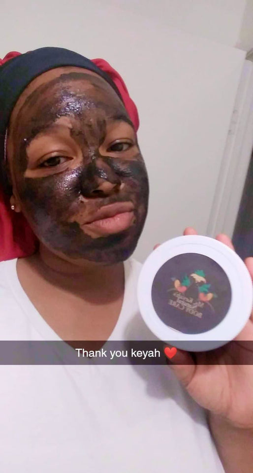Ms. Tammy is using my Detox Charcoal Facial Mask to renew and clear her skin by exfoliating getting rid of dead skin cells.